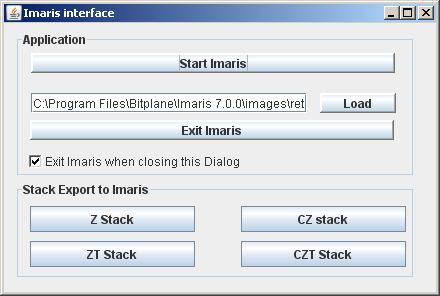Exports multidimensional stack opened in ImageJ directly to Imaris, so that 3D time series with multiple channels could be visualized and inspected using useful interface of Imaris. It works with 8-bit and 16-bit stacks. 32-bit stack exporting should work but not tested.